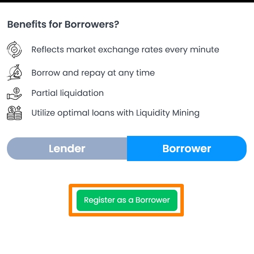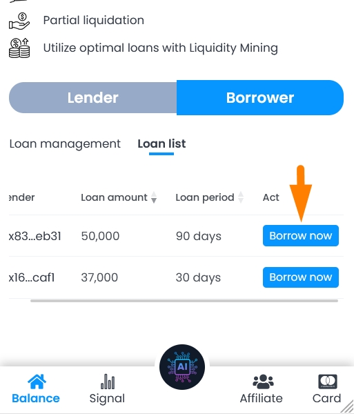 After reading the information carefully. Especially the liquidation rate. Click Borrow now to start the loan.