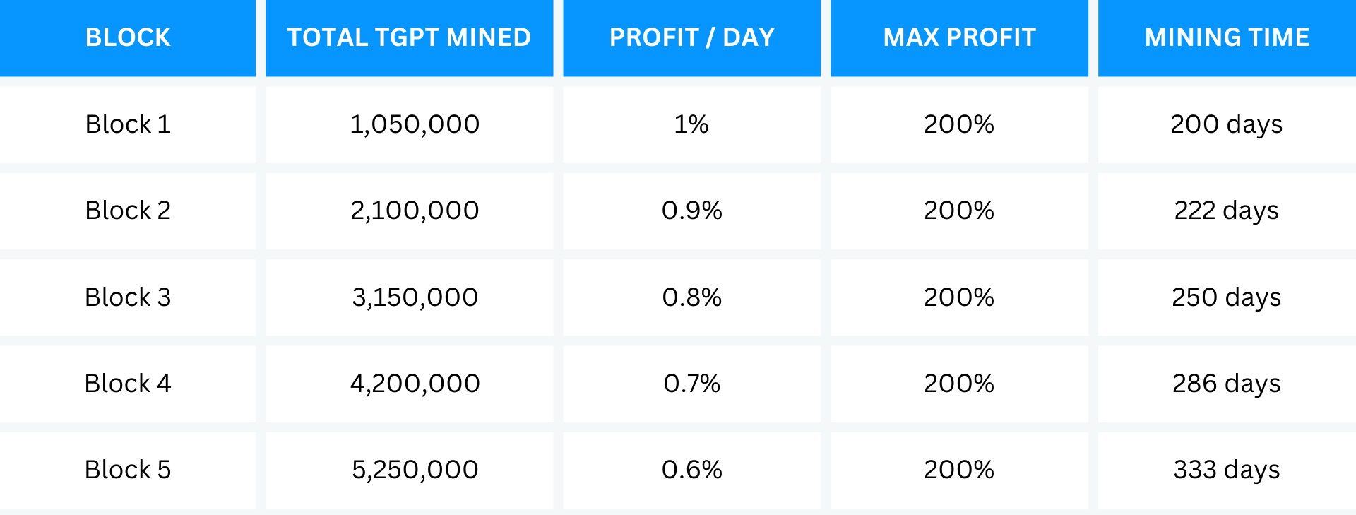 In the long term, we will see the number of TGPT exploitations gradually decrease. Start mining TGPT as soon as possible to maximize your profits.